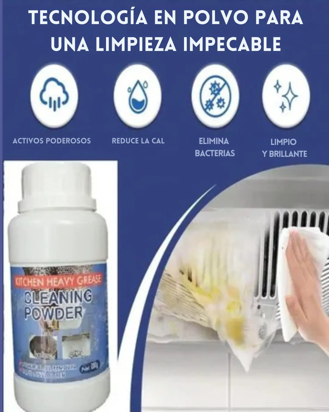 A diferencia de los líquidos convencionales, este polvo concentrado combina agentes activos que penetran y desintegran la grasa en segundos. Rinde más, limpia mejor y no daña tus superficies.